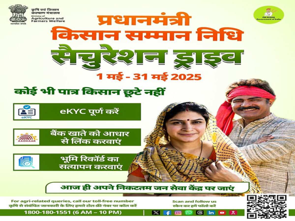 1 मई से 31 मई 2025 तक सुनिश्चित करें कि कोई भी पात्र किसान फायदे से वंचित न रहे. आज ही eKYC कराएं, आधार से बैंक खाता लिंक करें और भूमि रिकॉर्ड सत्यापित करवाएं. निकटतम जन सेवा केंद्र जाएं और योजना का लाभ पाएं.